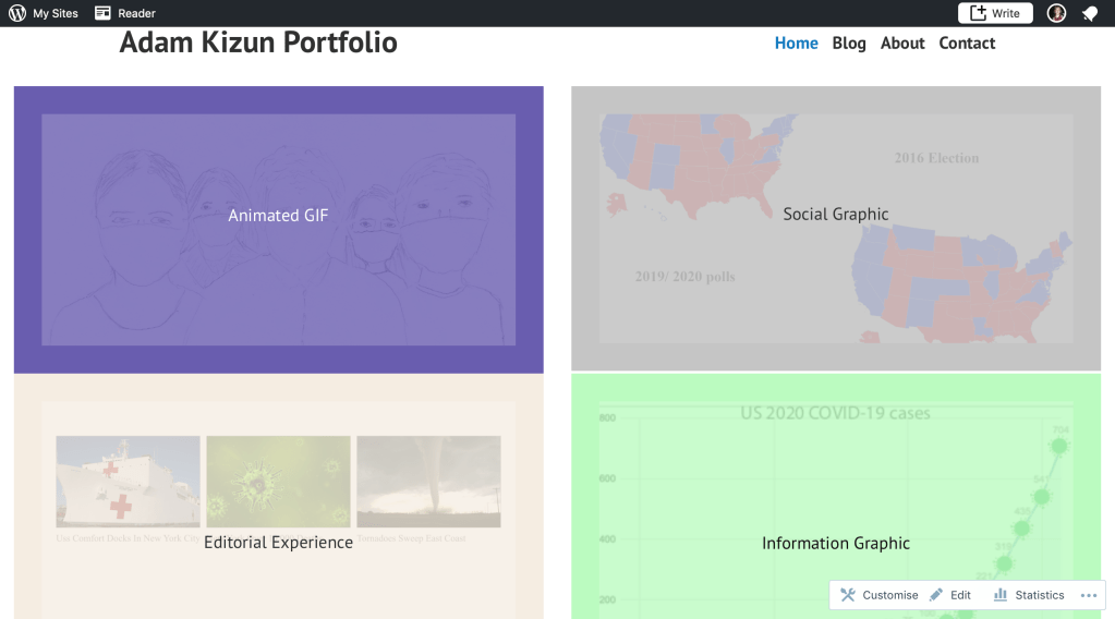 Portfolio Website Progress Posted byAdam Kizun22nd Apr 202022nd Apr 2020Posted inUncategorized Share this: Click to share on X (Opens in new window) X Click to share on Facebook (Opens in new window) Facebook Like Loading... Related